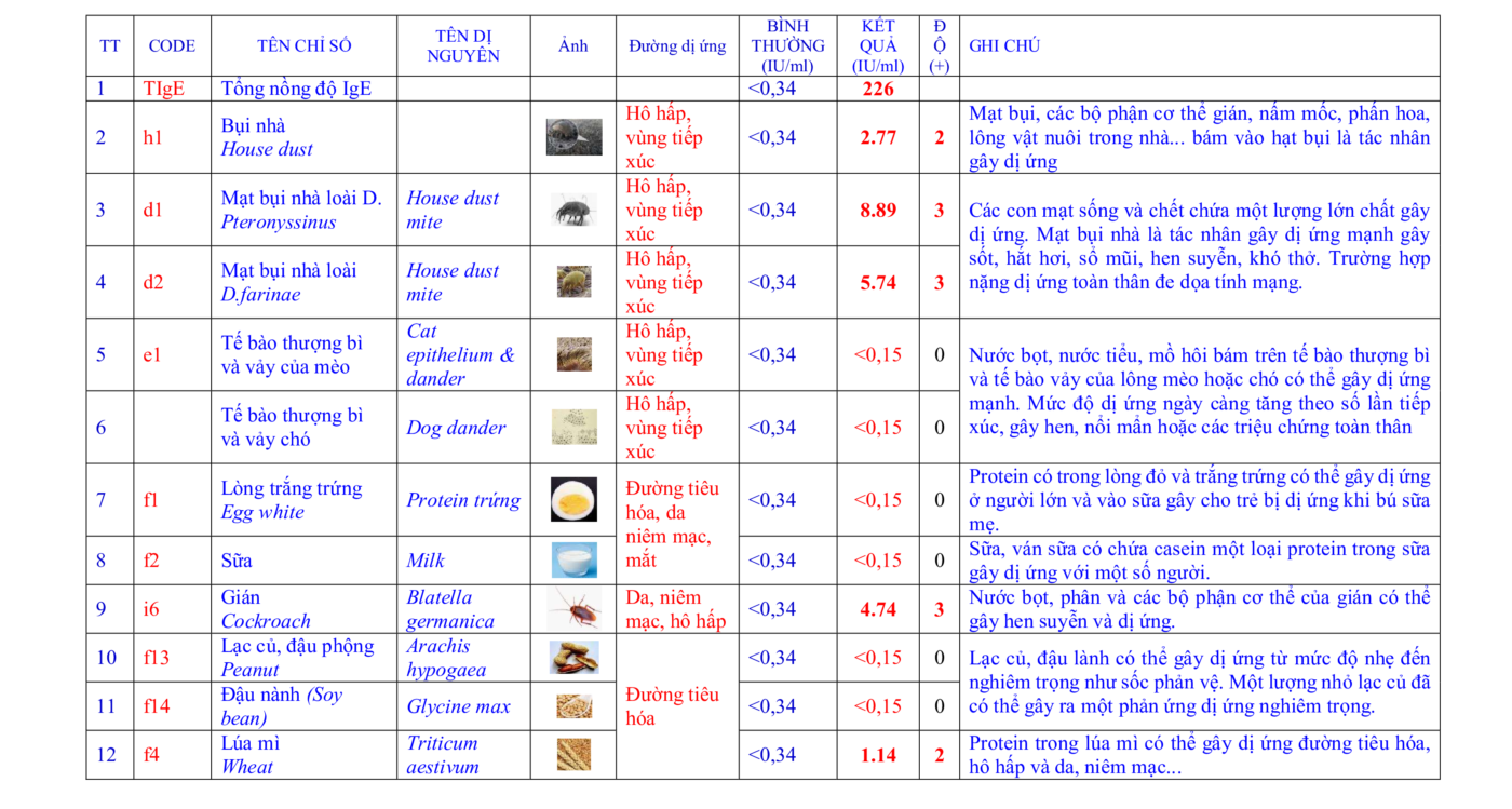 Nếu kết quả nhận được là âm tính thì có nghĩa người bệnh không có dị ứng với dị nguyên đó. Ngược lại, nếu kết quả là dương tính sẽ chỉ ra người bệnh có dị ứng với dị nguyên đó ở từng mức độ khác nhau. Để hiểu rõ hơn về kết quả xét nghiệm thì cần kết hợp nhận sự tư vấn và chẩn đoán lâm sàng của bác sĩ chuyên khoa.